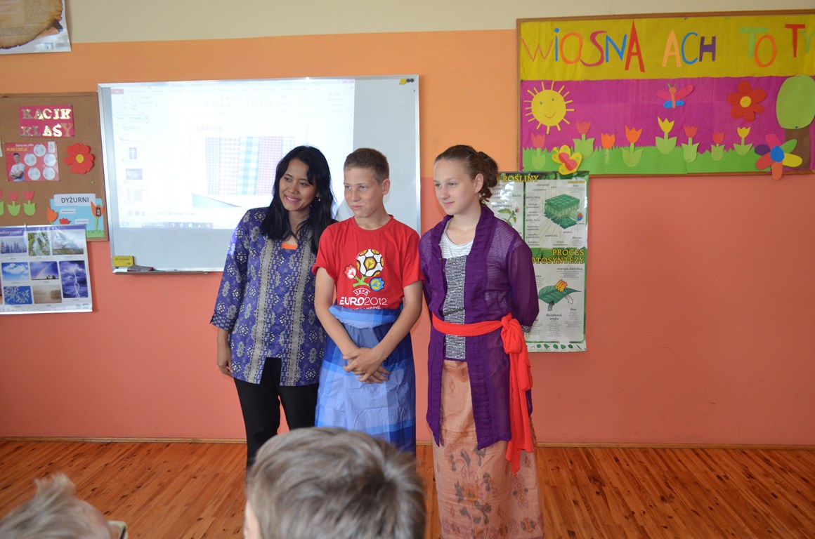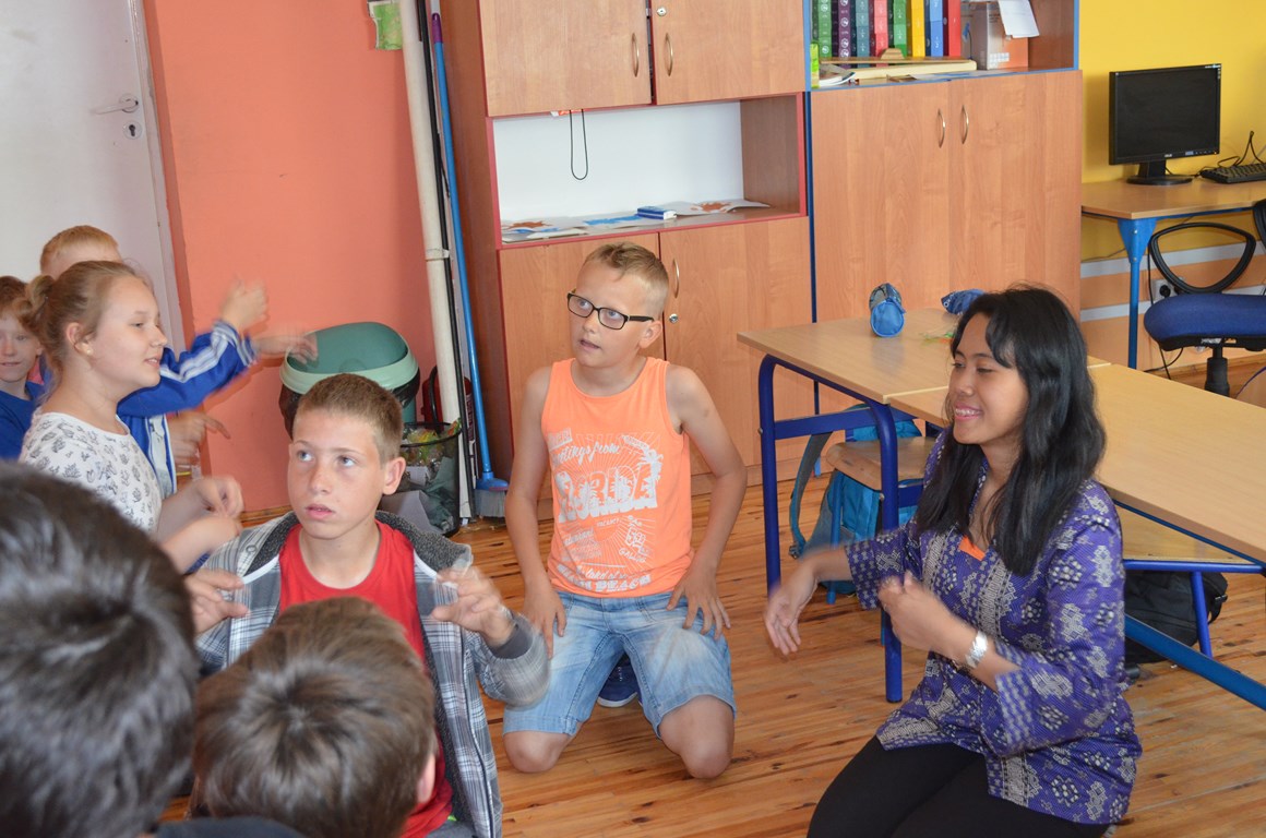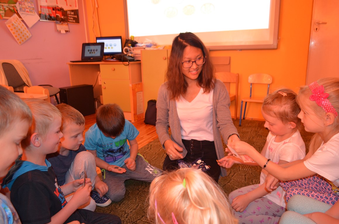 Od 5 d 14 czerwca nasza szkoła gościła troje wolontariuszy z Azji: Irmę z Indonezji oraz Mikę i Tommiego z Chin. Wolontariusze prowadzili zajęcia z zakresu wiedzy kulturowej z wyżej wymienionych krajów. Wszyscy uczniowie naszej szkoły, zarówno ci najmniejsi jak i nieco starsi, mieli okazję poznać nieco geografię, historię, warunki mieszkaniowe, transport, zwyczaje żywieniowe, walutę czy też system szkolnictwa obowiązujący w danym państwie. Wszystkie zajęcia prowadzone były w języku angielskim więc mieli również dobrą okazję do przećwiczenia swoich umiejętności językowych.