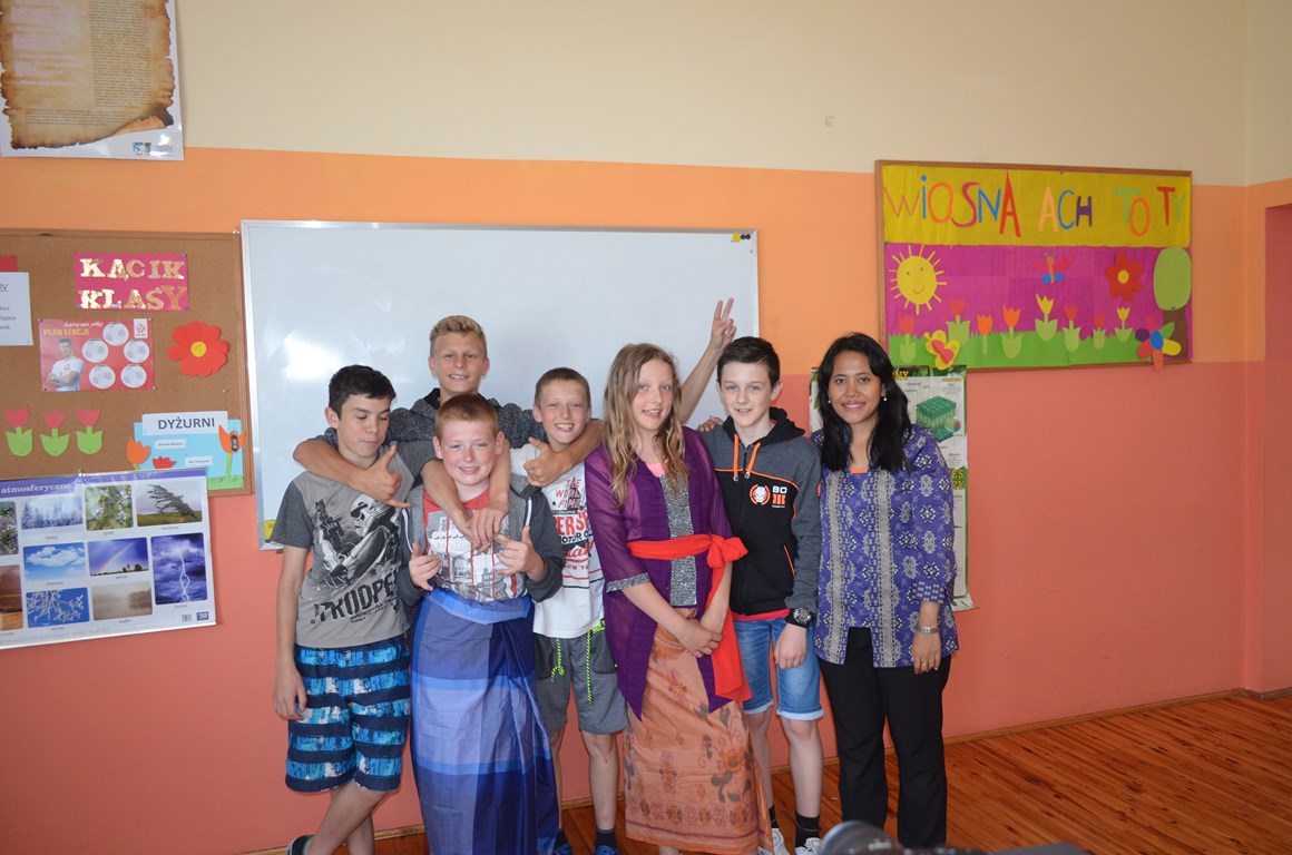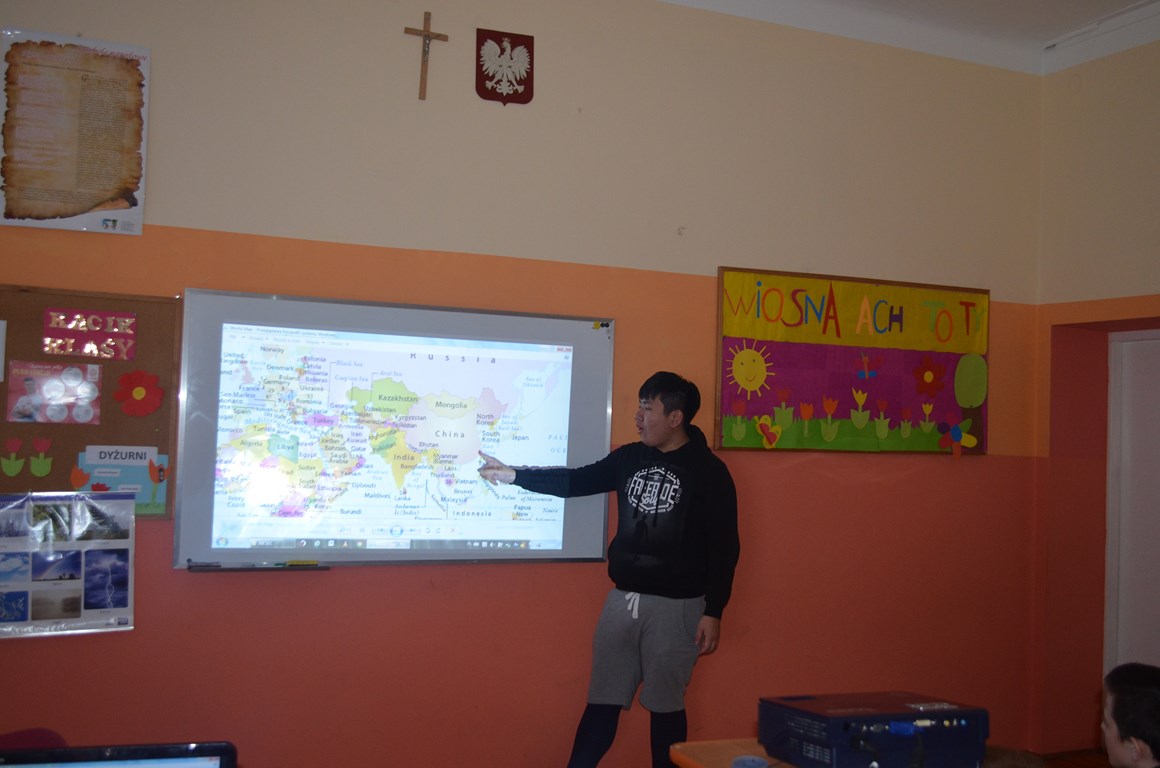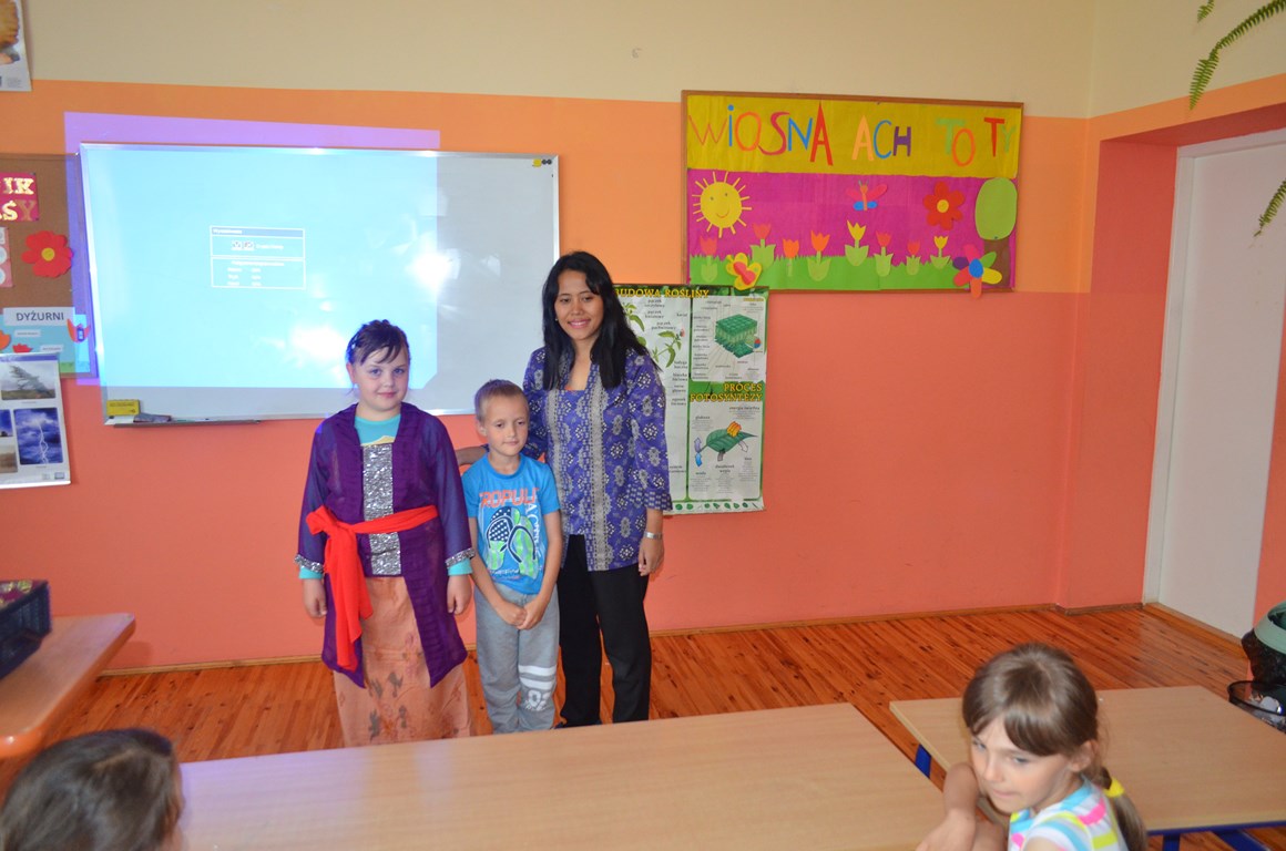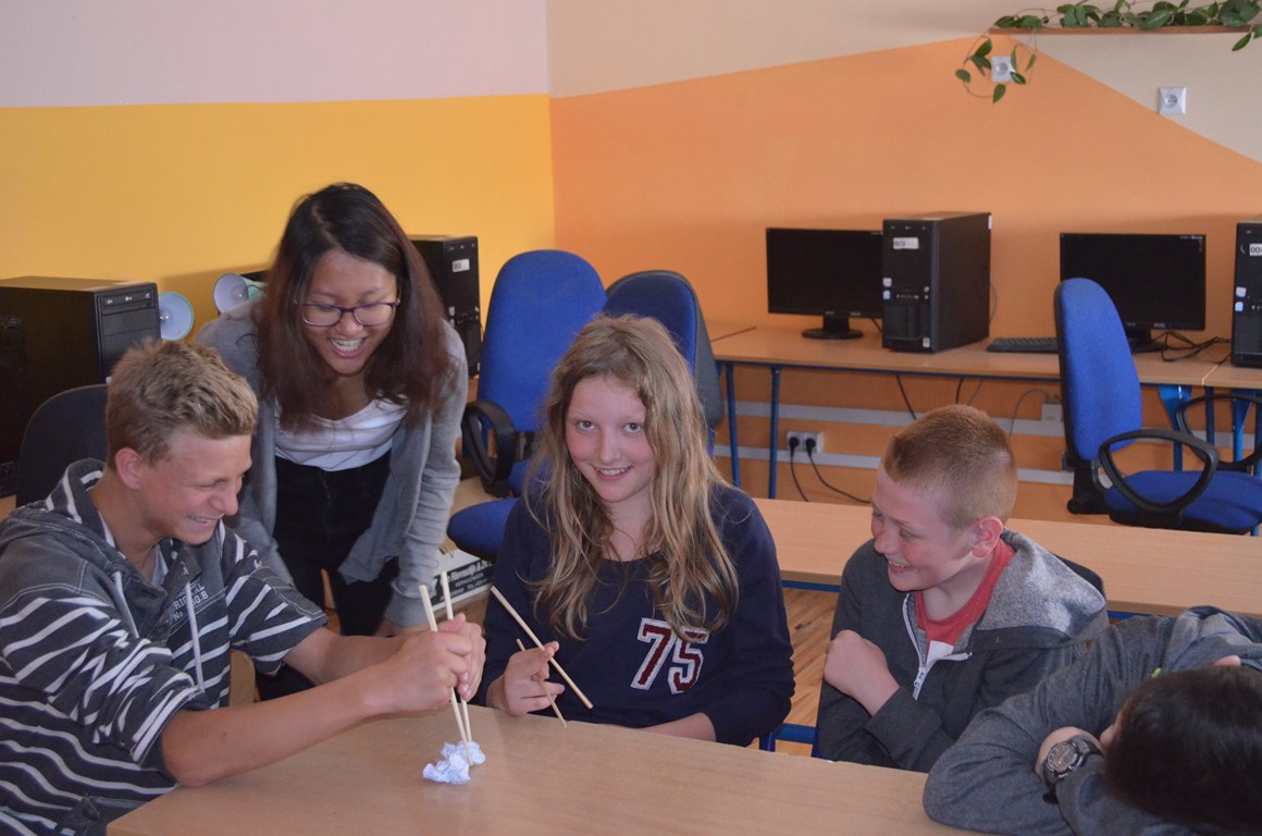 Od 5 d 14 czerwca nasza szkoła gościła troje wolontariuszy z Azji: Irmę z Indonezji oraz Mikę i Tommiego z Chin. Wolontariusze prowadzili zajęcia z zakresu wiedzy kulturowej z wyżej wymienionych krajów. Wszyscy uczniowie naszej szkoły, zarówno ci najmniejsi jak i nieco starsi, mieli okazję poznać nieco geografię, historię, warunki mieszkaniowe, transport, zwyczaje żywieniowe, walutę czy też system szkolnictwa obowiązujący w danym państwie. Wszystkie zajęcia prowadzone były w języku angielskim więc mieli również dobrą okazję do przećwiczenia swoich umiejętności językowych.