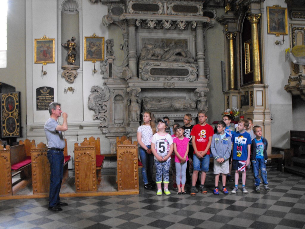 W pierwszym dniu wakacji, w poniedziałek 26 czerwca udaliśmy się na wycieczkę do Uchań i Wojsławic. Jej celem było zwiedzenie miejsc będących dziedzictwem naszego regionu i świadczących o wspaniałej, wielonarodowej i wielokulturowej jego historii. Zwiedzanie rozpoczęliśmy od kościoła pod wezwaniem Wniebowzięcia NMP wzniesionego ok 1625 roku w stylu lubelskiego renesansu, z pochodzącymi z epoki nagrobkami członków rodziny Uchańskich.