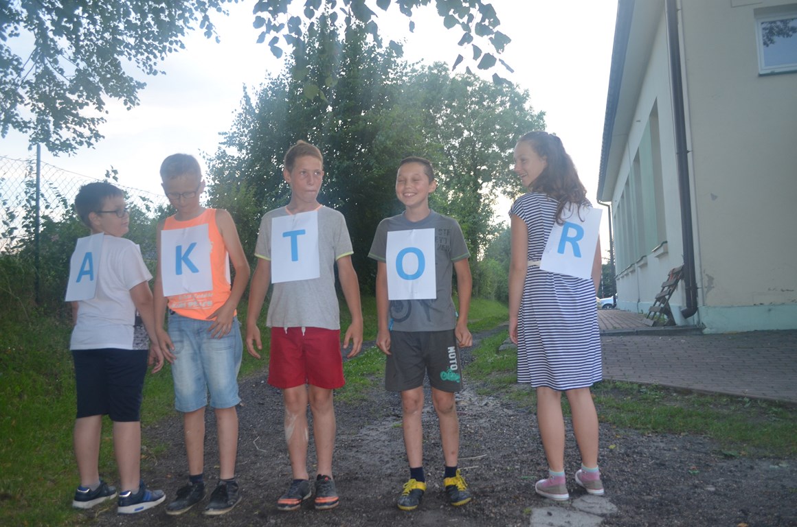 Na scenie poszczególne role zagrali: Oliwia, Cyprian, Agnieszka, Daniel i Emil z klasy V oraz Amanda i Krystian z klasy VI.