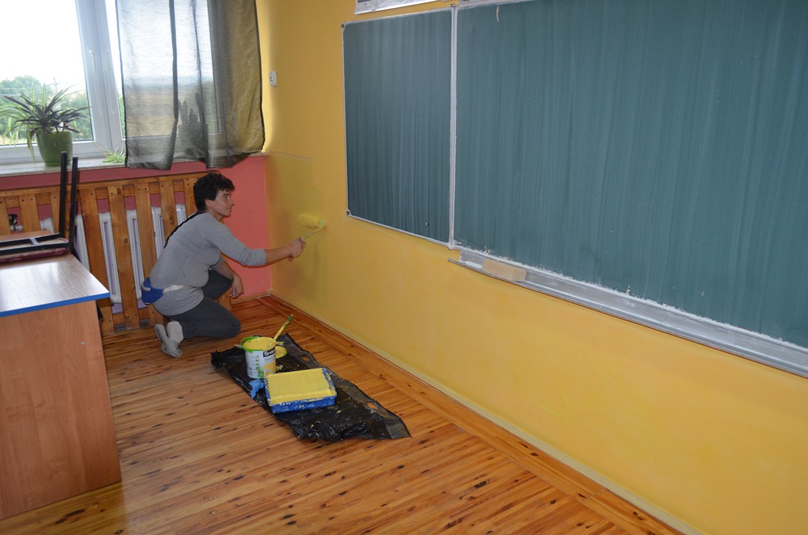 W związku z tym, że kończą się wakacje w naszej szkole przeprowadzono szereg prac porządkowo-remontowych. W pomoc aktywnie włączyli się rodzice, którzy kilka dni z rzędu przyjeżdżali do szkoły i ciężko pracowali. Odmalowane zostały m.in. sale lekcyjne oraz korytarz, posprzątano szkołę, umyto okna, wyprano firanki. Uporządkowany został także teren wokół szkoły m.in. przycięto żywopłot oraz skoszono trawę. Ważnym działaniem było zamontowanie nowej siatki ogrodzeniowej , zabezpieczającej teren z tyłu szkoły w pobliżu placu zabaw. Dzięki zaangażowaniu rodziców oraz pracowników naszej szkoły, uczniowie będą mogli rozpocząć naukę w nowym roku szkolnym 2017/2018 w odświeżonej, czystej, a przede wszystkim bezpiecznej szkole. Za okazaną pomoc wszystkim dziękujemy!
