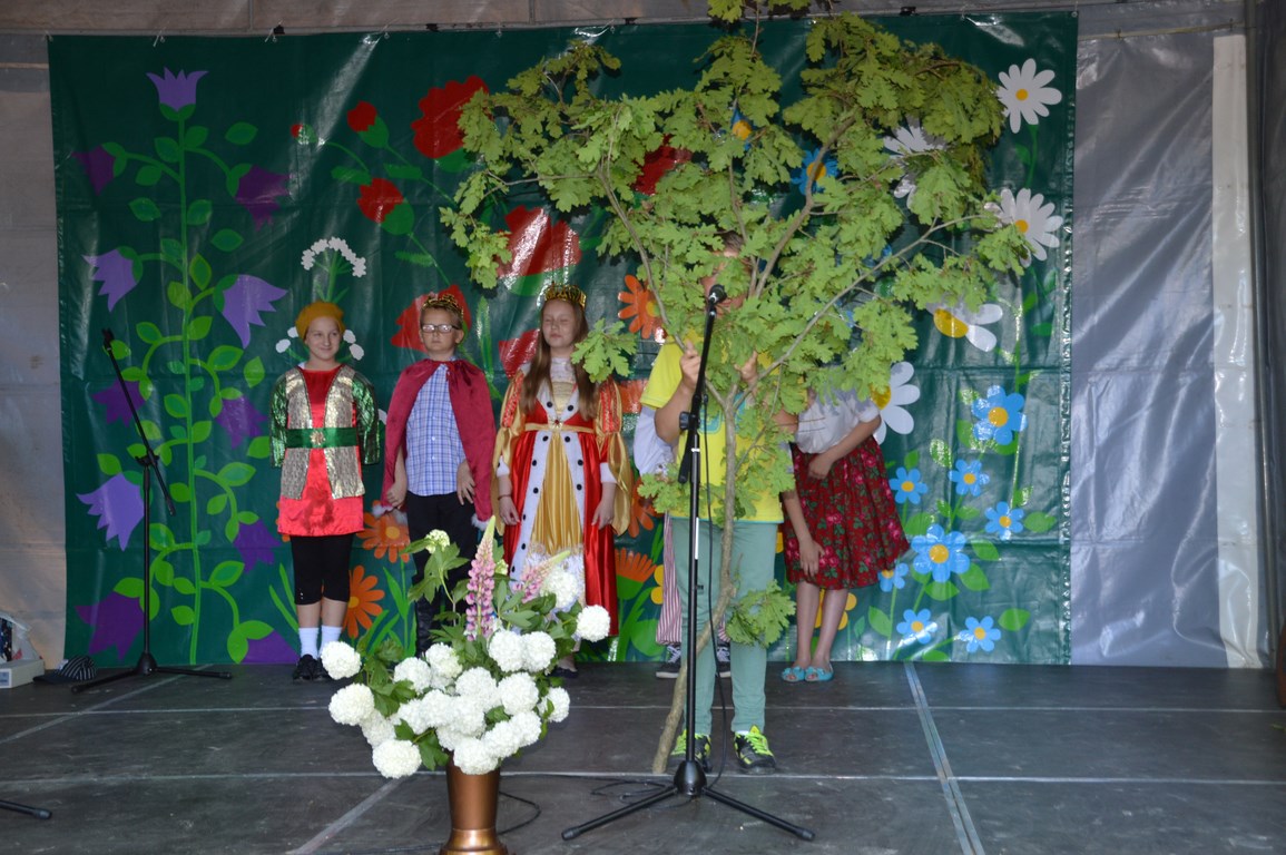 W czasie tej uroczystości zgromadzona publiczność obejrzała teatralną wersję legendy „O królowej Bonie i Dębie Zygmuncie”, którą przygotowali pod kierunkiem Pani Diany Cichockiej uczniowie naszej szkoły.