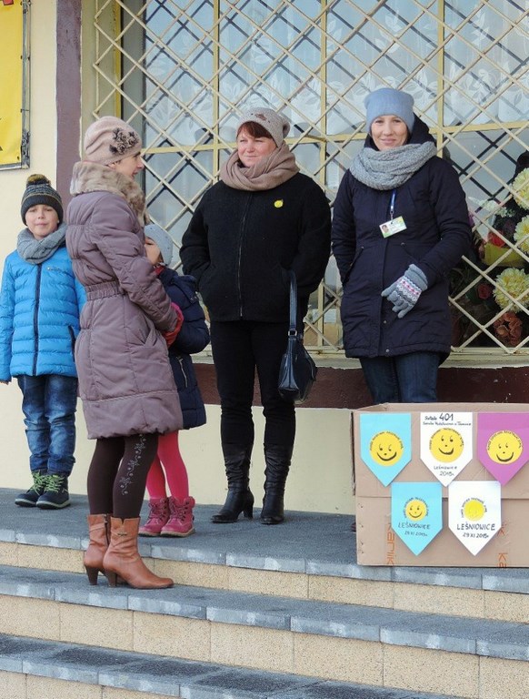 Około godziny 11.30 wolontariusze Sztabu Akcji 401 ze Szkoły Podstawowej w Teresinie, wystawili koszyki i pudełka w dwóch punktach w centerum Leśniowic: przy niedawno otwartym sklepie „Groszek” oraz przy sklepie spożywczo – przemysłowym „Popielniccy”. Oprócz wolontariuszy, przyjechali również całymi rodzinami uczniowie i pracownicy szkoły. Miłym zaskoczeniem był szeroki oddźwięk wśród społeczności lokalnej. Ludzie przychodzili całymi rodzinami, aby wspomóc Akcję. Przynoszono głównie produkty żywnościowe i artykuły szkolne.