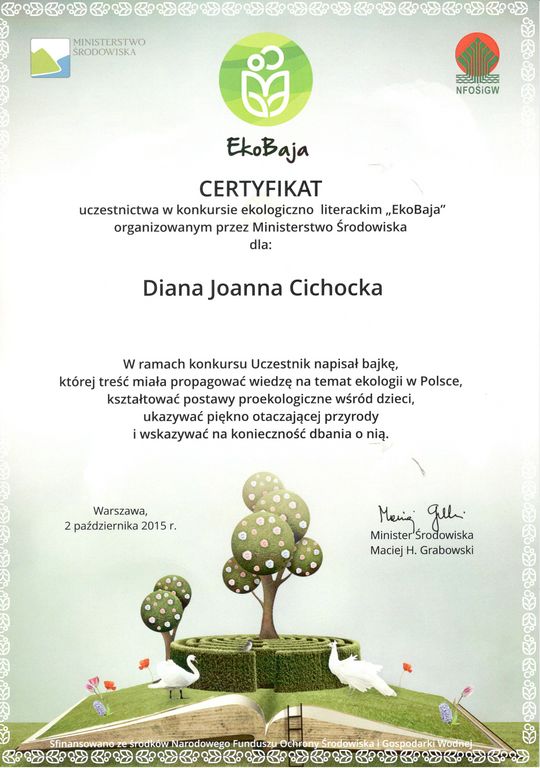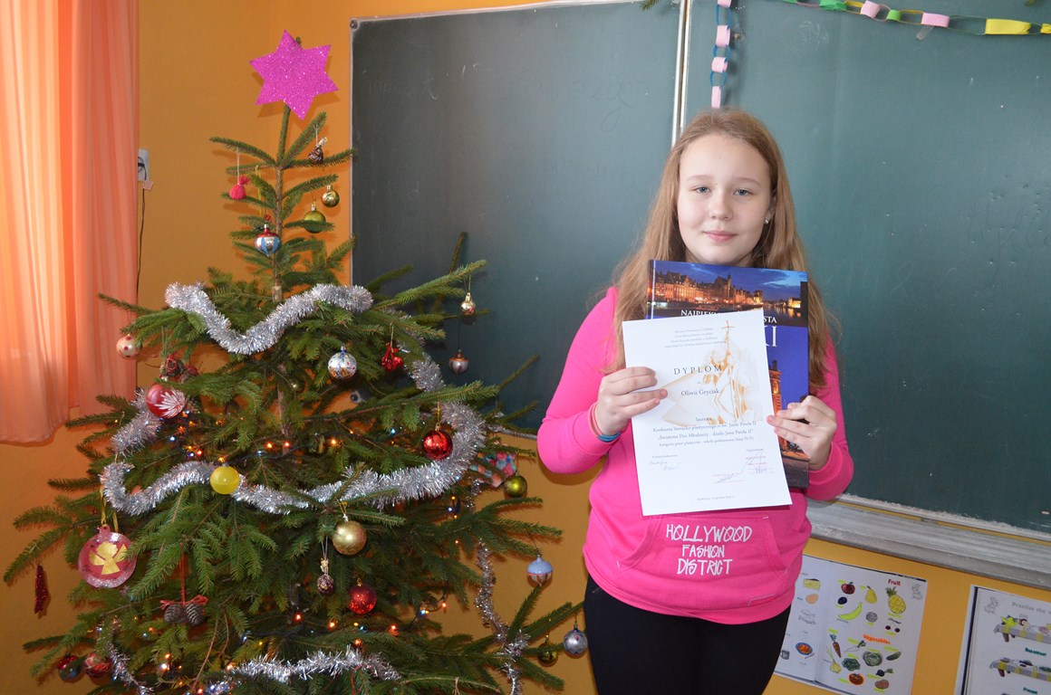 Pod okiem nauczycielki plastyki, Agnieszki Grabowskiej, Oliwia wykonała piękną pracę, pełną symboliki, która została doceniona przez członków jury. Uroczyste podsumowanie konkursu oraz wręczenie nagród odbyło się 15 grudnia 2015r. w Domu Kultury w Siedliszczu.