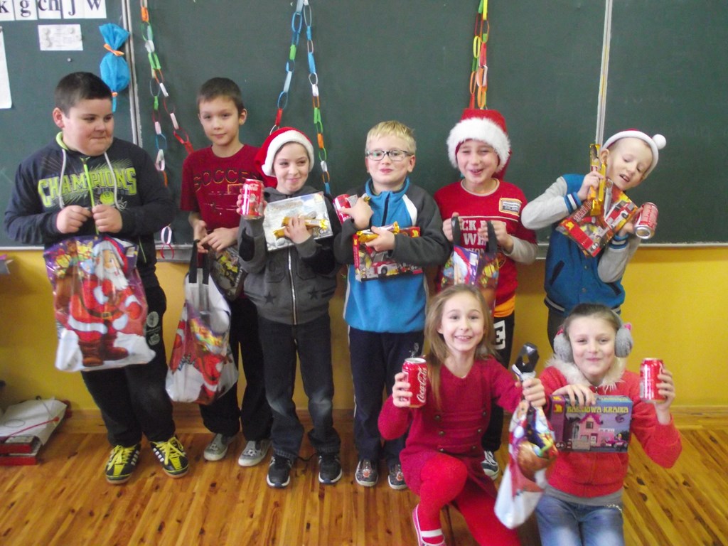 Nikt nie pozostał bez drobnego upominku. Wszyscy zostali poczęstowani cukierkami. Morał z tego taki, że byliśmy grzeczni! W szkole było bardzo radośnie i czuć było już atmosferę zbliżających się świąt.