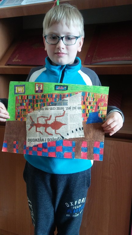 Zadanie konkursowe polegało na wykonaniu pracy plastycznej dowolną techniką na temat: "Zobacz książkę". Interpretacja tematu, zaprezentowana przez naszego ucznia, bardzo spodobała się komisji konkursowej. Alankowi składamy serdeczne gratulacje i życzymy dalszych sukcesów.