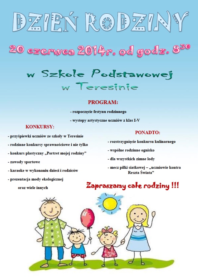 1września uczniowie Szkoły Podstawowej im. Marii Konopnickiej w Teresinie rozpoczęli nowy rok szkolny 2014/15. Uczniowie, rodzice oraz grono pedagogiczne zostali uroczyście powitani przez dyrektora szkoły - p. Wojciecha Potockiego.