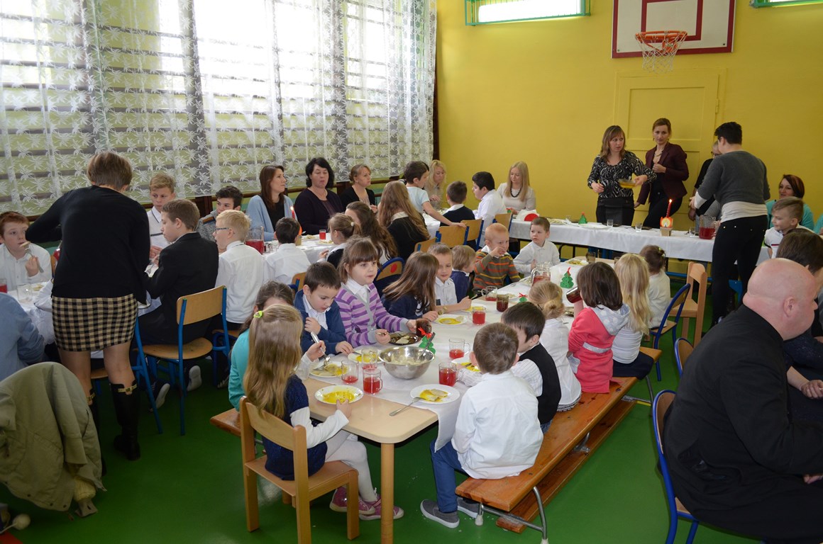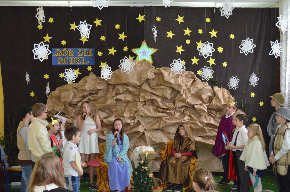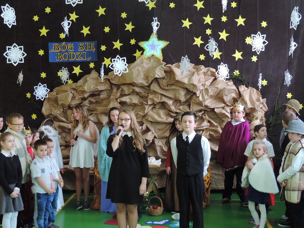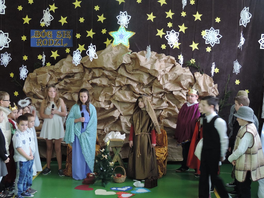Prawdziwe Święta Bożego Narodzenia nie mogą się obyć bez wspólnego kolędowania i łamania opłatkiem. Nasza szkoła podtrzymuje te tradycje, dlatego 21 grudnia 2016 r. uczniowie klas IV-VI przedstawiły piękne i wzruszające jasełka przygotowane pod kierunkiem księdza Marcina Zielińskiego. Po jasełkach odbyło się kolędowanie przy Wigilijnym stole, łamanie opłatkiem oraz spożywania pysznych pierożków. Spotkanie wigilijne upłynęło w bardzo miłej i świątecznej atmosferze.