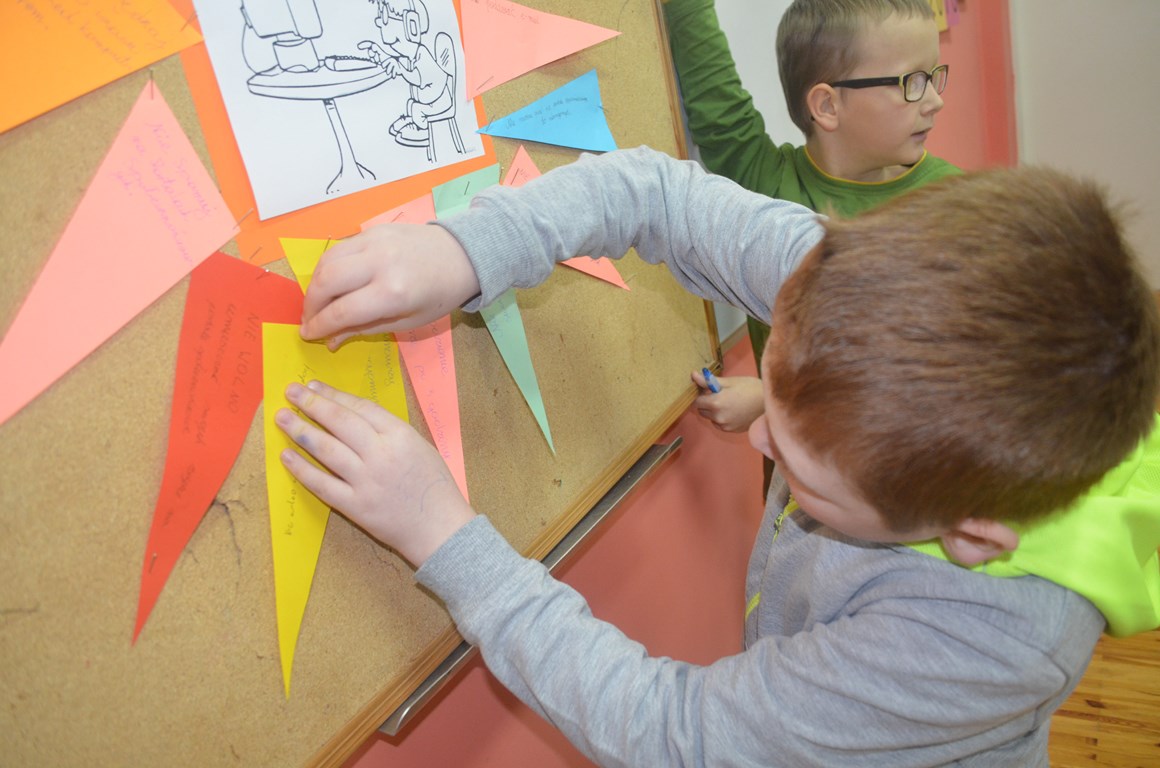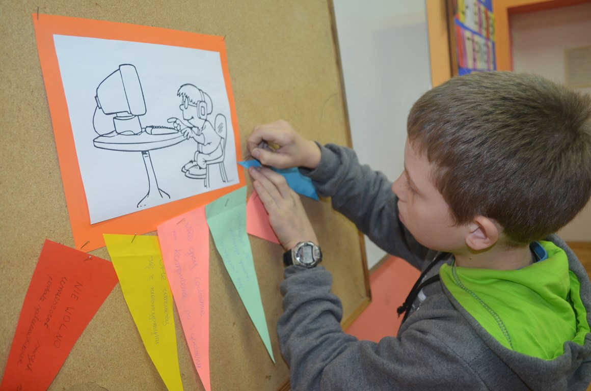 W klasach I - VI na lekcjach informatyki zostały przeprowadzone zajęcia poświęcone tematyce zagrożeń w Sieci oraz zasad bezpiecznego korzystania z niej. Zajęcia zostały przeprowadzone na podstawie scenariuszy i materiałów (filmów, spotów, plików muzycznych) udostępnionych na stronie internetowej www.dzieckowsieci.pl. oraz materiałów przygotowanych przez Panią Marię Wołoszczak-Skroś koordynatora akcji.