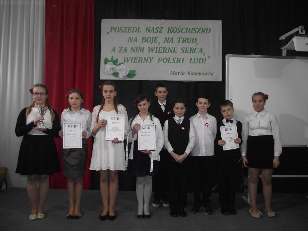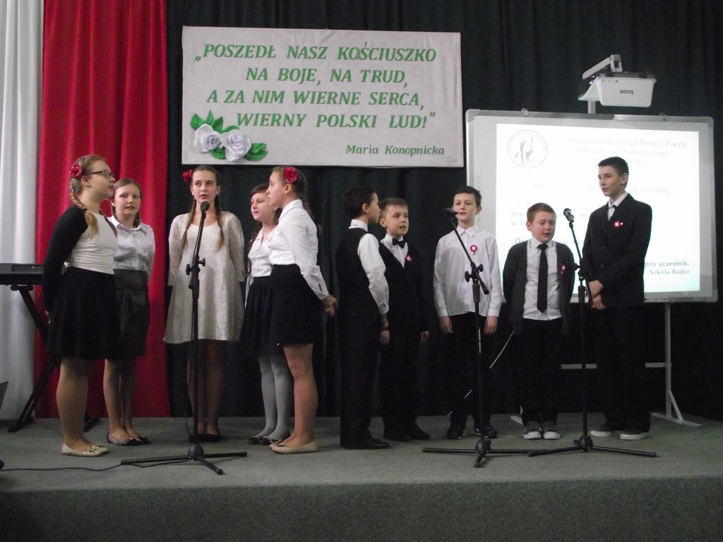 Niejednym trofeum mogą się poszczycić uczniowie naszej szkoły, którzy wzięli udział w XV Powiatowym Przeglądzie Pieśni i Poezji Patriotycznej i Powstańczej, który odbył się 22 marca 2016 r. w Zespole Szkół w Wojsławicach.
