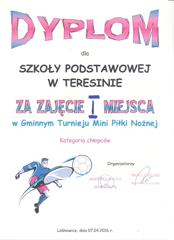 W kategorii chłopców pierwsze miejsca zajęła drużyna ze Szkoły Podstawowej w Teresinie i to ona będzie reprezentować gminę w turnieju międzygminnym.