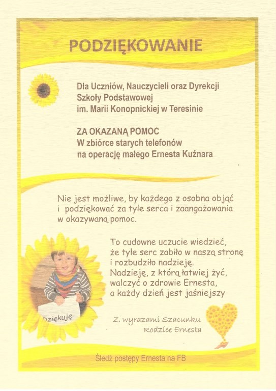Dziękujemy za te piękne lata, poświęcenia i oddania, lojalność oraz trud włożony w pracę w naszej szkole. Wyrażamy także nadzieję, że nie zapomni Pani o nas i podobnie jak my wszyscy, będzie dobrze wspominać spędzone tutaj chwile. Chcemy zapewnić Panią, że będzie Pani u nas zawsze mile widzianym gościem.